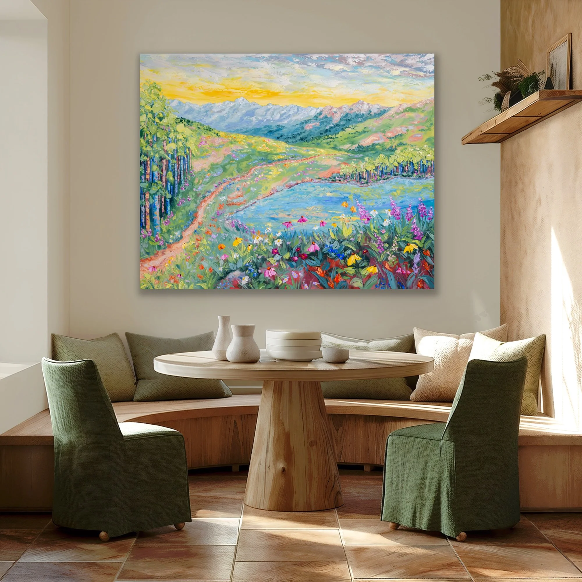 “A Colorado Love Song” - Original oil painting by Emily Chaplin. Oil on Canvas. 60”w x 48”h x 1.5”d. Unframed. Gallery wired and ready to hang.