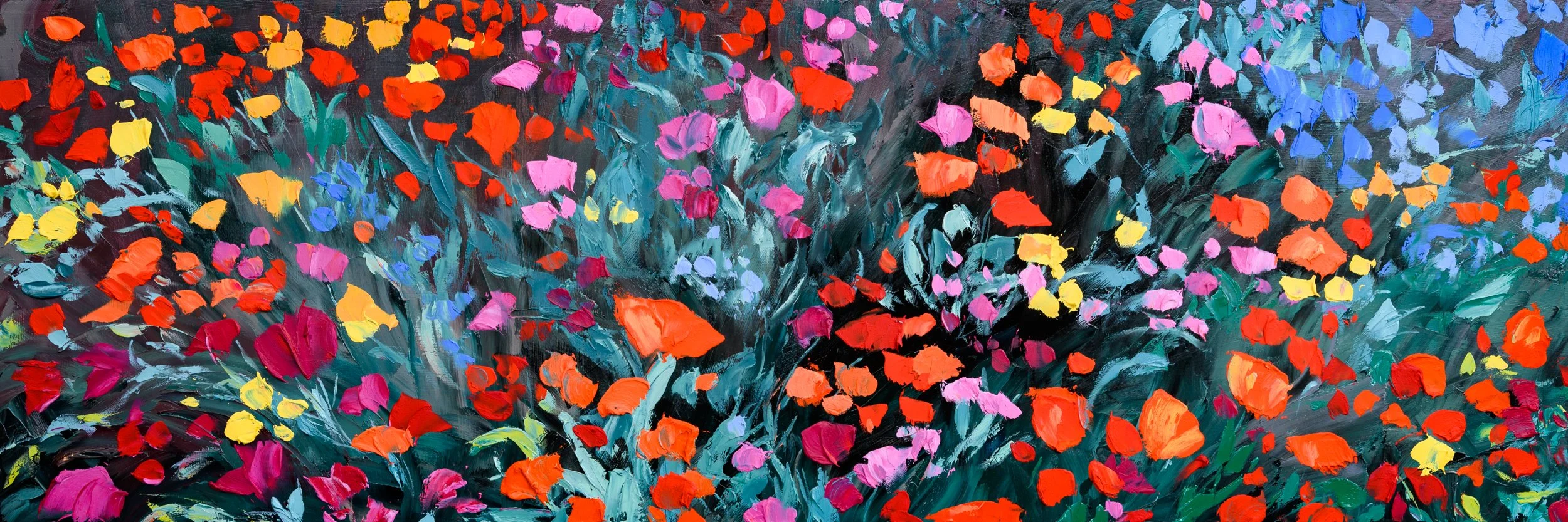 "Sea of Wildflowers 1" 36"x12" Oil on Wood. SOLD